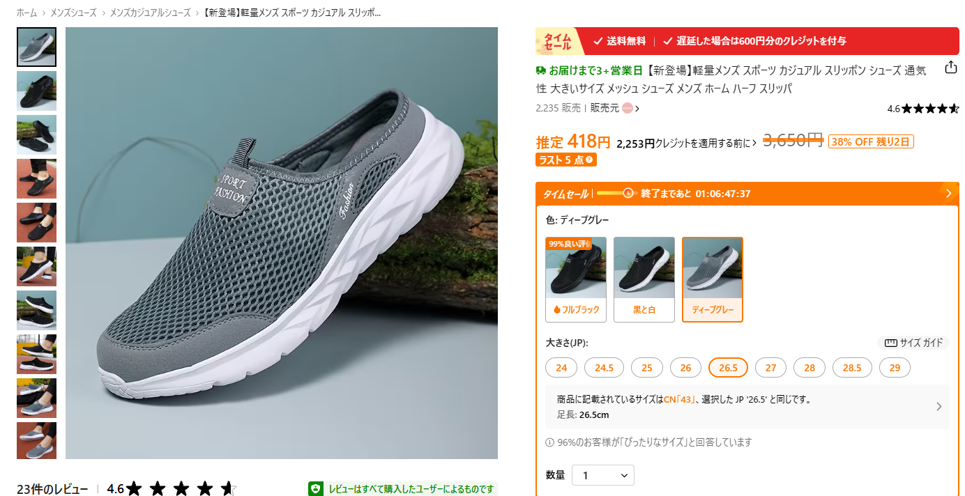 TEMUで靴を買う際には、