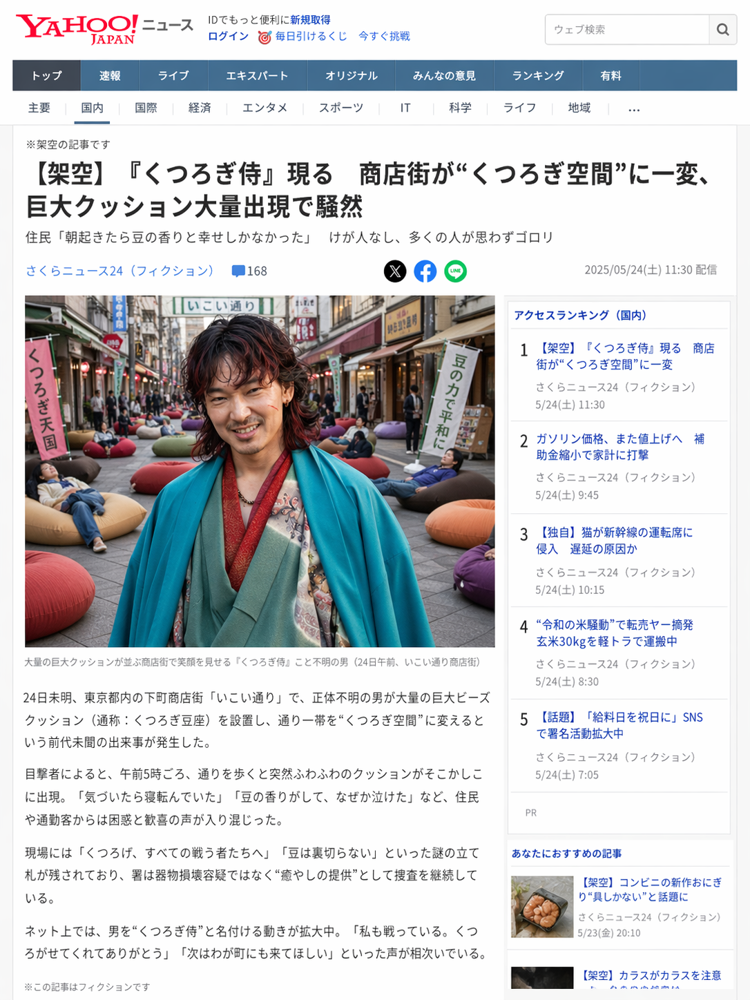 「このキャラがyahooニュースの記事で 何かの架空の事件になってる記事 写真付きで」