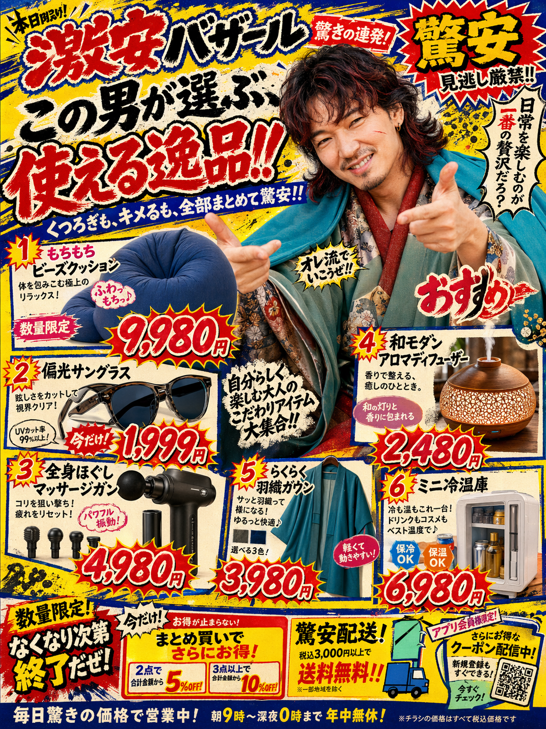「このキャラを使って架空のyogiboのチラシを作成 アスペクト比=3:4」