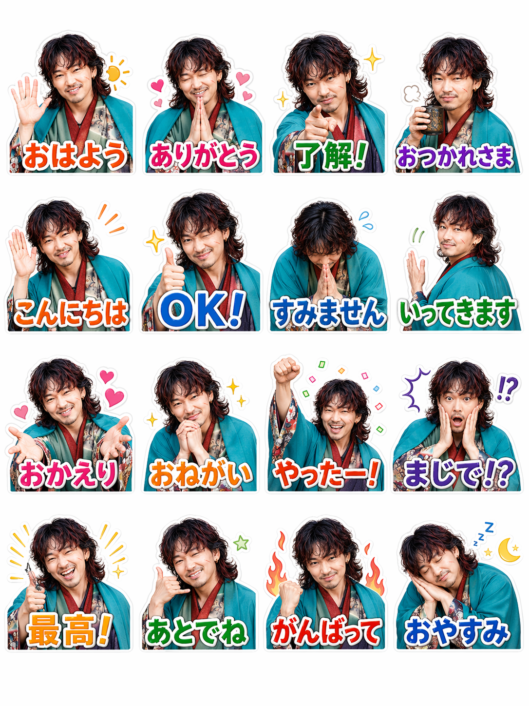 「このキャラを使って LINEスタンプの一覧を作成してください」