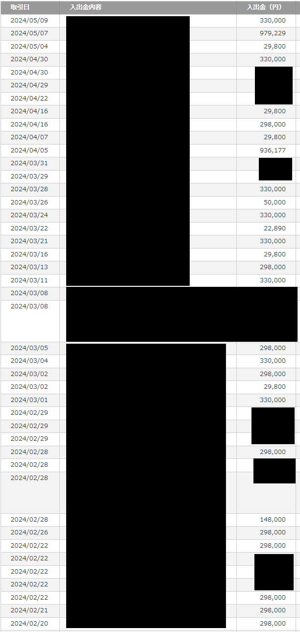 ※画像は銀行口座入金の一部です